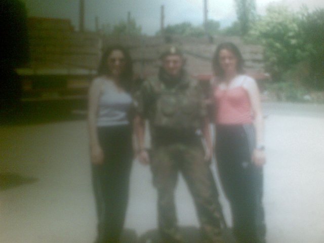 Vielä enemmän harmi kun en tosiaankaan muista tai välttämättä edes tiedä keiden kahden naisen paljaiden olkapäiden välissä poseeraan. Kumpikaan ei tulkki, eikä paikallistyöntekijä, eikä edes naapurikylän pieni murhapolttajatyttö. Ei ole myöskään kumpikaan leirin vastapäisen naapuruston tytöistä ja sen paljastaa kuppikoko.