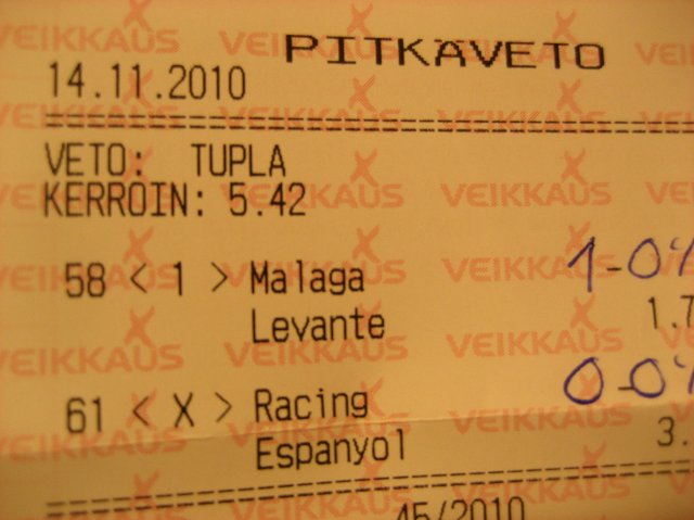 Pientä nostetta havaittavissa taas.. lauantain helmenä oli Wigan & sunnuntai oli varsinainen pelipäivä tällä kertaa & erityisesti 3 hyvää kohdetta sieltä löysin ! Malaga vaihtoi vastikään valmentajaa huonosti menneen alkukauden johdosta etenkin kotipeleissään. Viimeksi voittivat jo Cupissa uuden valmentajan alaisuudessa ja jatkoa oli odotettavissa sarjanousijan kustannuksella. Veikkauksen kerroinkin oli ihan riittävä vaikka ulkomailla oli parempiakin tarjolla jotka tosin ehtivät jo tipahtaa loppuviikkoa kohti hitailta pelaajilta.