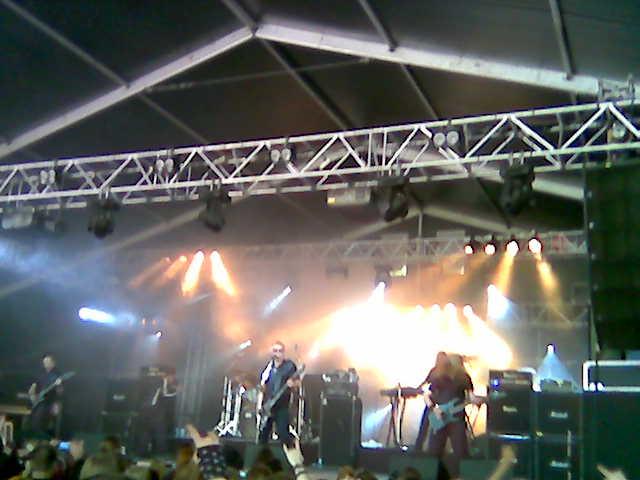Sitten tuli kova esitys ai että ! Portugalilainen Moonspell soitti hyvin pitkälti hieman vanhempaa tuotantoaan(Wolfheart & Irreligious) jotka levyt kaikki olinkin jo kuullut tai omistanut siis alkuajoilta. Bändi pystyi pitämään yleisöä otteessaan alusta loppuun saakka, biisit olivat tuttuja siis suurin osa mulle eli käytännössä lähes kaikki, pirun hyviäkin ja ennen kaikkea livenä bändi oli loistava keulahahmon eläytyessä niin hyvin musiikkinsa. Myös bändin basisti Mercyful Fate-bändipaidan kanssa jäi hyvin mieleen. Biisit ovat sekä salaperäisiä, aggressiivisia, melodisia että mahtipontisia samaan aikaan ja tämän bändin kohdalla resepti toimii ! Se oli todella kova veto, ehkäpä se kovin koko festareilla nähdyistä !
