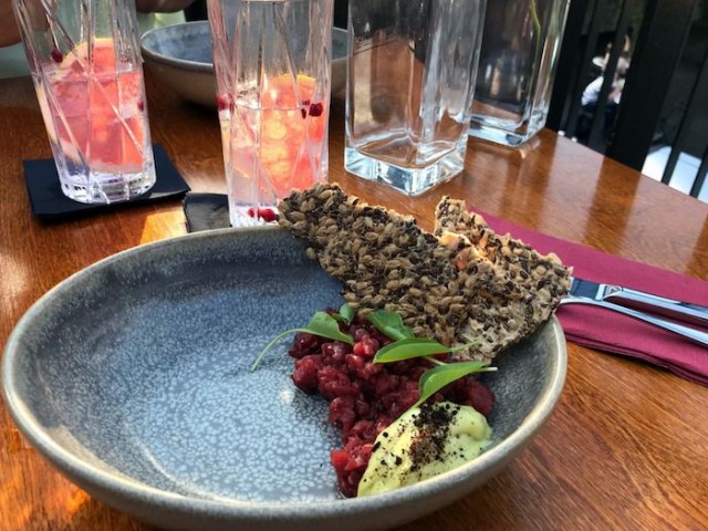 Alkuruoaksi sain ihanan, yksinkertaisen tartarin, jossa laadukas ja pehmeä liha ja voimakas yrttimajoneesi saivat rapeutta näkkäristä, joka teki tartarista myös hieman tavanomaisesta erottuvan. Tartar yhdistettiin Negroni Spagliaton kanssa, joka oli paras maistamani negroni koskaan. Todennäköisesti juomaan lisätystä kuplivasta johtuen.