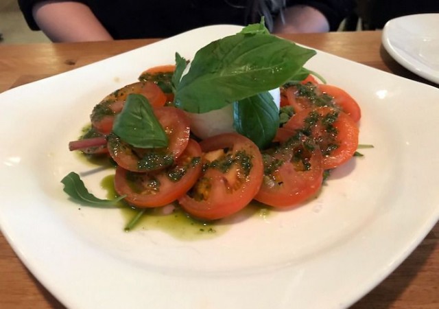 Alkuruoaksi valitsemme carpaccion rucolalla ja parmesaanilla sekä puhvelimozzarellaa, tomaattia ja basilikaa. Lihasta eikä juustosta säästellä ja alkuruoissakin on jo reilusti syötävää. Tässä ravintolassa on hinta-laatusuhde kohdillaan!