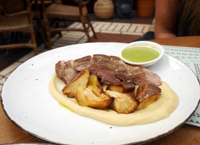 Pääruokana päästään kokeilemaan espanjalaisia klassikoita, kuten Iberico-porsaasta, mojokastiketta ja palsternakkaa. Porsas on niin hyvää, ettei seuralaiseni melkein ennätä maistaa sitä sen jo kadottua lähes kokonaan vatsaani. Possu toimii kastikkeen kanssa niin erinomaisesti, että palsternakkapyree jää lautasella aivan sivuosaan. Toisena klassikkoannoksena maistellaan kanacanneloneja, joka voi kuulostaa tavanomaiselta, mutta älkää erehtykö luulemaan annosta tylsäksi. Se on todella maukas, myös sen salaatti on erinomainen ja se maistuu kesältä.
