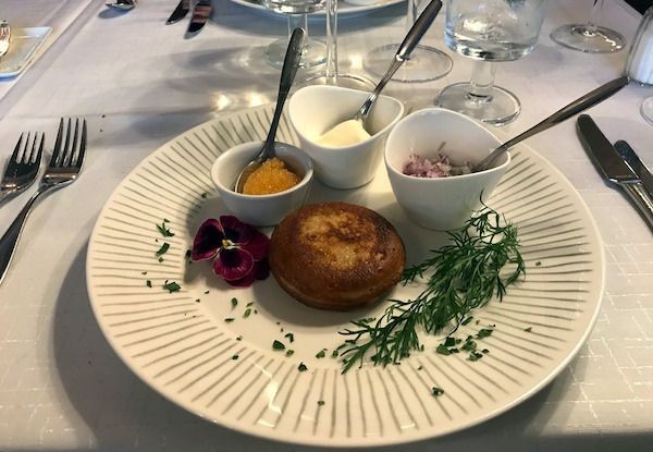 Erityismaininnan ansaitsevat Messeniuksen blinit, jotka ovat uskomattoman maukkaita, eikä niiden täytteissä kitsastella. Onneksi ravintolan blinikausi on erityisen pitkä ja alkaa jo syksyllä, sillä tätä annosta täytyy päästä syömään pian uudelleen!