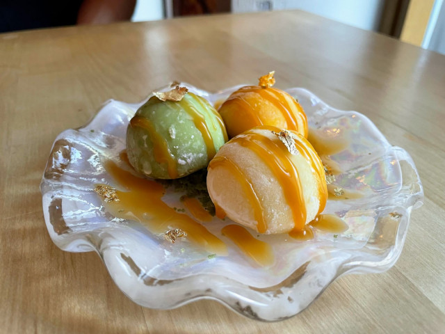 Pienen makean päätöksen upeita ja yllättäviä makuelämyksiä sisältävälle aterialle toivat pienet mocha-jäätelöt, joista etenkin ananas toimi erinomaisesti raikkaana lopetuksena.