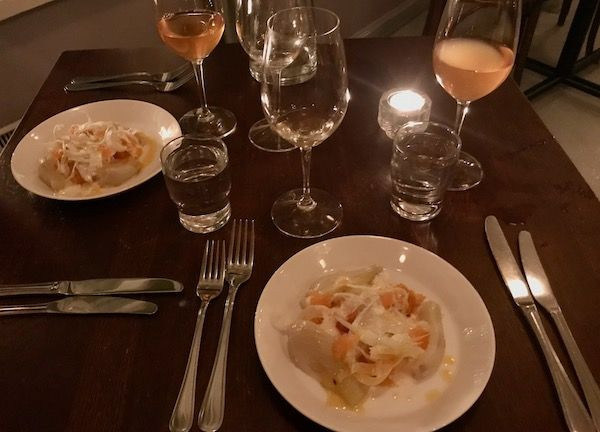 Vuoden 2020 pop up alkoi lupaavasti, kun saimme eteemme kauniisti asetellun lautasen pieniä makupaloja. Artisokkaa, siikaa, naudan sisäfilettä sekä suolaisen madeleinen. Miten ihana aloitus!