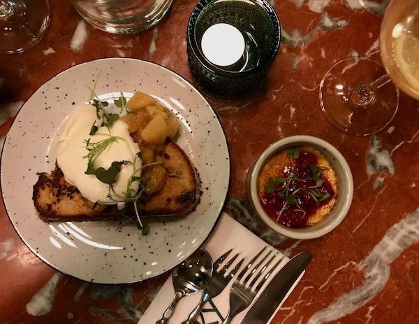 Mutta, jos mennään nyt näihin tutustumiskäynnin annoksiin, niistä tulee ehdottomasti nostaa esiin hirviwallenberg savustetulla sipulilla ja tummalla puolukkakastikkeella. Se myytiin meille lauseella ”aivan tajuttoman hyvää!”, eikä tuossa lauseessa ole liiottelun häivääkään, se oli todella hyvää. Mehevää ja maukasta, ja riistan käyttöhän on myös aina ilmastoteko.