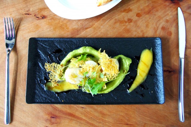 Milka poimii listalta suosikkeja, joita lähdemme seuralaiseni kanssa testaamaan. Rugosan keittiö on sekoitus Välimerta ja Skandinaviaa sisältäen runsaasti klassisia eurooppalaisen keittiön elementtejä, mutta myös erikoisempia yksityiskohtia. Alkuun maistelemme Rugosan paahdetut punajuuret sekä kampasimpukat, joista kumpikin annos onnistuu yllättämään.