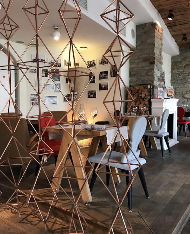 Ravintolan ylemmän kerroksen wc-tilat on rakennettu vanhaan savupiippuun siten, että huoneen katto jatkuu hormina korkealle ylös ja savupiipun sisällä tuoksuu vielä vahvasti noki. Miten mahtava yksityiskohta! Se kannattaa ehdottomasti käydä katsomassa, kun Kaerajaaniin saapuu ruokailemaan.