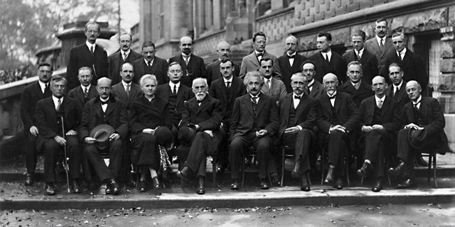 Ruotsalainen Sanna Dullaway muuntaa vanhat mustavalko-otokset värikuviksi. Solvay-konferenssin kuuluisat tieteilijät pääsevät julisteeseen asti.