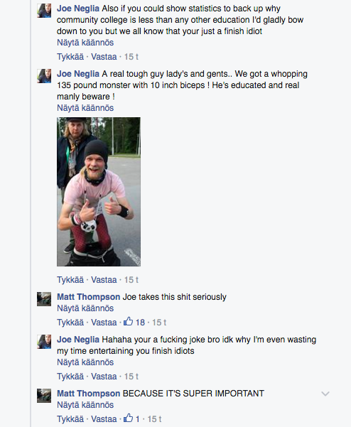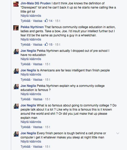 Keskusteluun hyökkäsi mukaan myös Joe Neglia -niminen kaveri, joka osoitti omalla kiukkuisuudellaan, millaista on huonoin mahdollinen keskustelu. Tämän jutun otsikko pitää yllä ikävää stereotypiaa amerikkalaisista, mutta Joe Neglia itse pitää huolen siitä, että ´Murica on vahvasti läsnä.