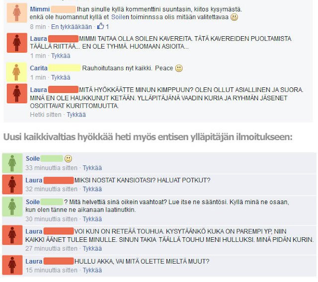 Fobba ei ehdi kaikkialle ja siksi fb-kirppikset tarvitsevat omat poliisinsa. Niiden virkaa ajavat sivustojen ylläpitäjät, jotka pitävät huolta, että keskustelu ja myyntioperaatiot sujuvat sovittujen pelisääntöjen mukaisesti. Välillä ylläpitäjää täytyy vaihtaa. Silloin saattaa syntyä konflikti, kuten tässä Feissarimokien dokumentoimassa tapauksessa.