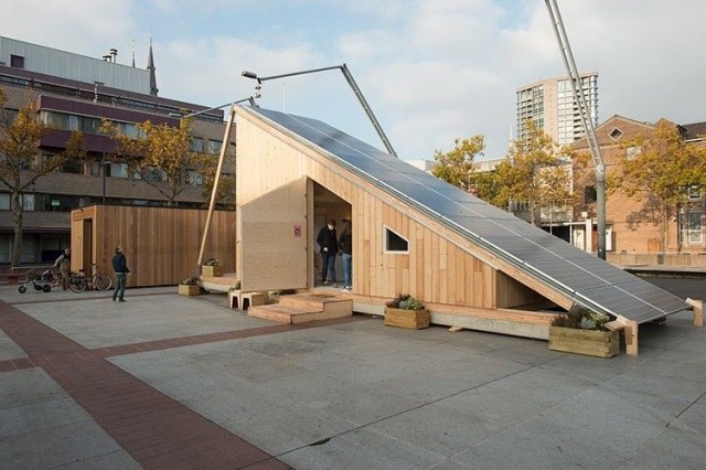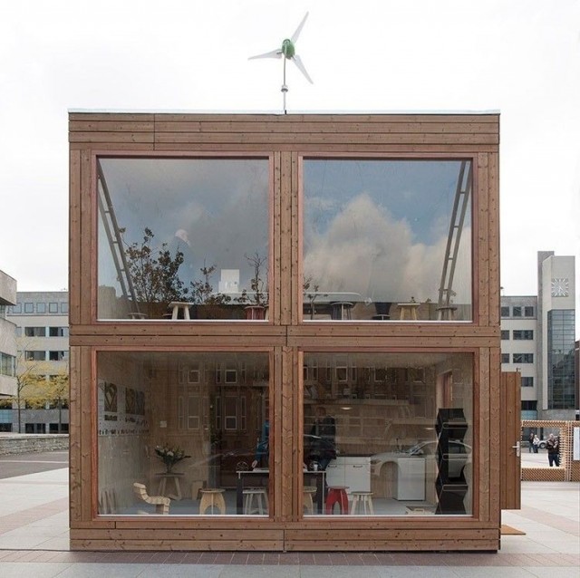 Tämä hassunnäköinen tötterö on eristetty, ekologinen, veden- ja tulenkestävä ja erittäin kustannustehokas rakennus, jonka on ajateltu tarjoavan vastaanottokeskusten ympäristöön keinon majoittaa tulijoita. Ne pitävät sisällään sängyt, lavuaarin, vessan, suihkun ja keittiönpöydän ja ne voidaan kytkeä helposti sähköverkkoon.