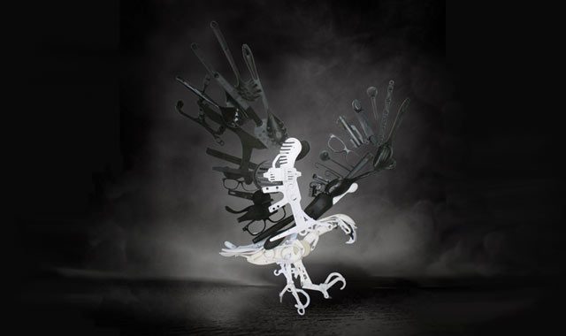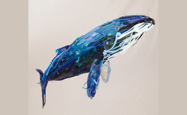 Sayaka Ganz ei heitä vanhoja muovisia keittiötarvikkeita tai muita muoviesineitä pois. Hän rakentaa niistä uskomattomia eläintaideteoksia.