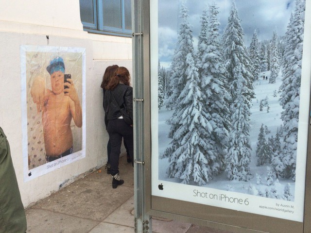 Tavallisen ihmisen puhelimen kamera on todellisuudessa täynnä ei-niin-henkeäsalpaavia vessaselfieitä jylhien vuoristomaisemakuvien sijaan. Mainosmieskaksikko, joka haluaa pysyä nimettömänä, otti asiakseen teettää tällaisista tavallisista kuvista, jotka on myös kuvattu iPhone 6:lla, samanlaisia julisteita. Parodiajulisteet liisteröitiin alkuperäisten Apple-mainosten välittömään läheisyyteen huumoriarvon maksimoinniksi.