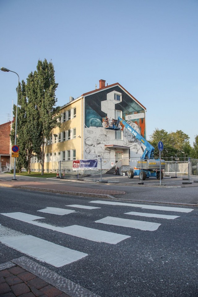 Arvostettu espanjalainen Kenor maalaa muraalin Kemin ydinkeskustassa sijaitsevan Prima-talon seinään. Pitkän linjan taiteilijan teokset tunnetaan vahvasta värimaailmastaan ja leikkisistä abstrakteista muodoistaan. Taiteilija imee itseensä inspiraatiota teknomusiikista.