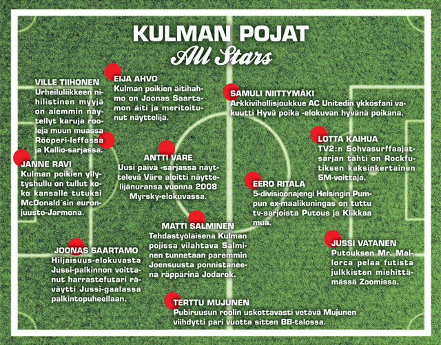 Kulman pojat on aladivareissa taapertavan Kulman Pallon kannatusporukka. Poikien arkeen kuuluu peleissä riehumisen lisäksi ilkivaltaa vastustajajoukkuetta kohtaan, pleikkarifutista ja jälkikasvun patistamista pallon perään.