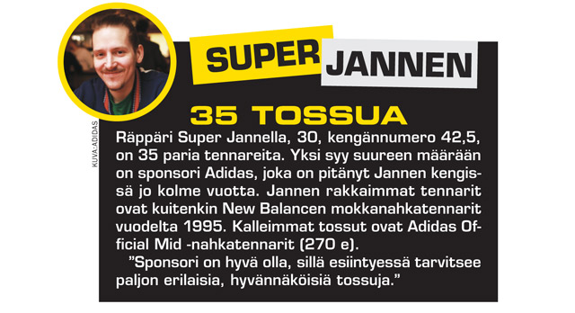 Kolme raitaa ja maineikas menneisyys matalavartisena koripallokenkänä. Vuonna 1969 syntyneestä kengästä tuli julkkis vasta 1980-luvulla, kun Run D.M.C. alkoi käyttää tossuja ilman kengännauhoja.