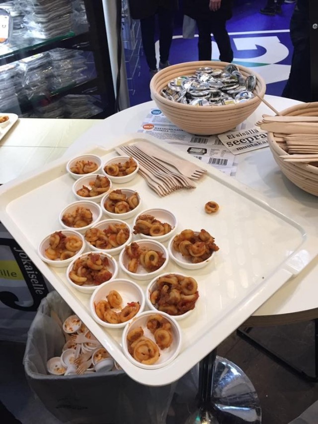 Kurjasta säästä huolimatta jono messuille on todella pitkä jo yhdentoista aikaan aamupäivällä. Myös sisällä käy huima kuhina saapuessamme. Jonot kuitenkin vetävät tehokkaasti suosituimmillakin kojuilla.