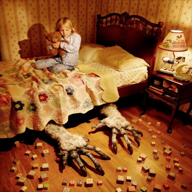 “Projektini alkoi idealla kuvasarjasta, joka pohjautuu satuihin. Kun valmistauduin projektiin, ymmärsin, että monet satujen arkkityypeistä – sellaiset kuten noita, ihmissusi tai lapsia ahmiva örkki – löytyvät myös moderneista kauhuleffoista. Kun tajusin, että kauhuleffat ovat tämän päivän satuja, aloin ajatella projektiani eri tavalla. Tuloksena syntyi sarja valokuvia, jotka tutkivat lapsuuden pelkojen luonnetta, maustettuna satujen hirviöiden arkkityypeillä, kauhuleffojen maailmalla ja ripauksella tiedostamatonta.”