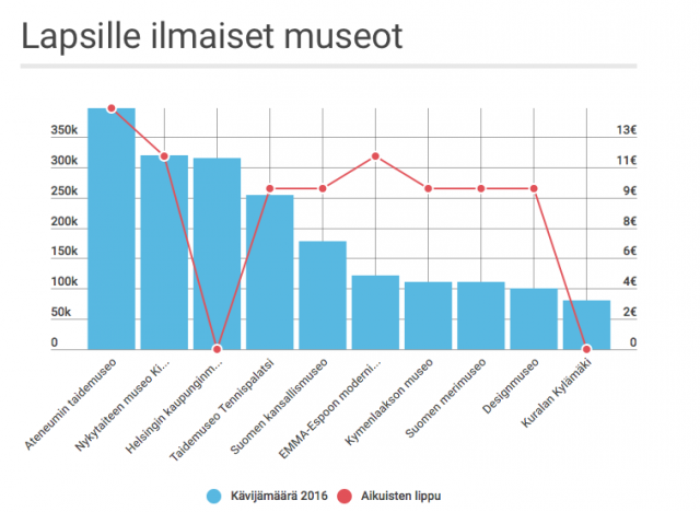 Ateneumin taidemuseoon aikuisen pääsylippu maksaa peräti 15 euroa, mutta lapsille se on kuitenkin ilmainen. Monissa museoissa on satavuotisen Suomen kunniaksi erikoisnäyttelyitä, joissa tarkastellaan Suomen kulttuuria ja historiaa. Ateneumissa on esillä esimerkiksi Alvar Aallon elämäntyöhön keskittyvä näyttely. Museo järjestää lauantaisin työpajoja, joissa pääsee tutustumaan taiteeseen tekemällä ja rakentamalla itse kuvia. Työpaja on tarkoitettu kaikenikäisille, ja lapsille se on ilmainen. Seuraava paja järjestetään 12. elokuuta.