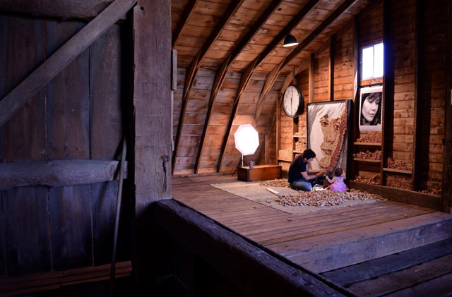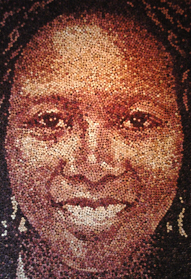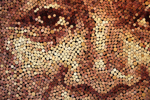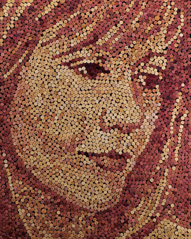 Michiganin osavaltiossa Yhdysvalloissa asuva kuvittaja-taiteilija Scott Gundersen on tehnyt tuhansista käytetyistä viinipullojen korkeista jättiläismäisiä muotokuvia.