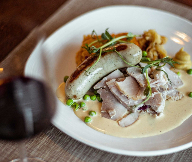 Pääruoaksi on tarjolla Ahvenanmaan siikaa pinaatin ja samppanjakastikkeen kera tai grillattua Iberico-porsasta paahdetun sellerin ja tryffelikastikkeen kanssa.