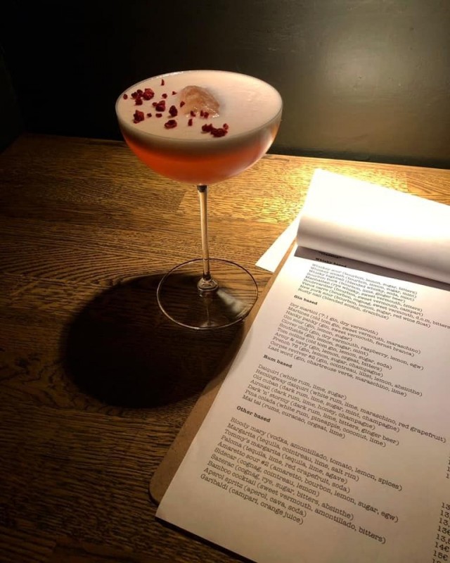 Cocktaileihin voi tutustua pienestä kirjasesta, jossa rakennetaan samalla historiallista etsivätarinaa. Tarjolla on laadukas ginivalikoima sekä etsivätarinaan sopivia juomia ja versioituja klassikoita, kuten Winter Delusion.