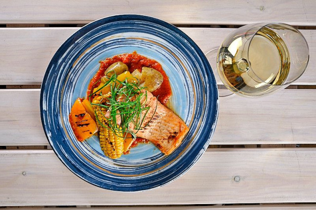 Ravintolan terassilla viihdyt maukkaiden ruokien ja kylmien juomien äärelle tunnin jos toisenkin.