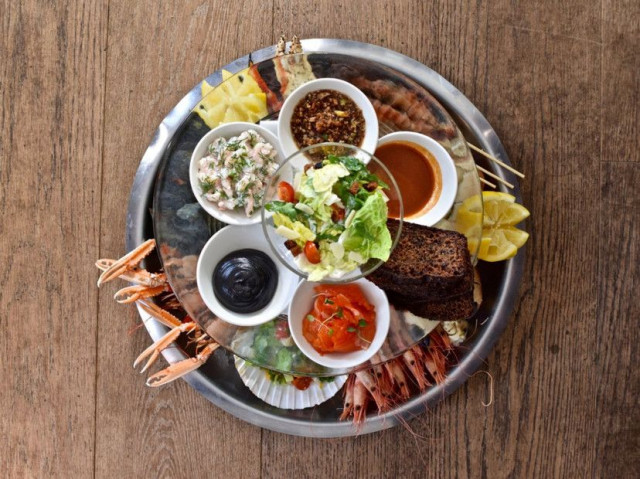Kahdelle tai kolmelle hengelle suunniteltu runsas Äyriäiskassi sisältää laajan kattauksen mereneläviä. Kassi sisältää muun muassa kuningasravunkoipea, kotimaisia täplärapuja, marinoitua ja grillattua tiikerirapua, Fin de Claire ostereita, kampasimpukkaa, mustekalasalaattia, talon kalakeittoa ja saaristolaislimppua.