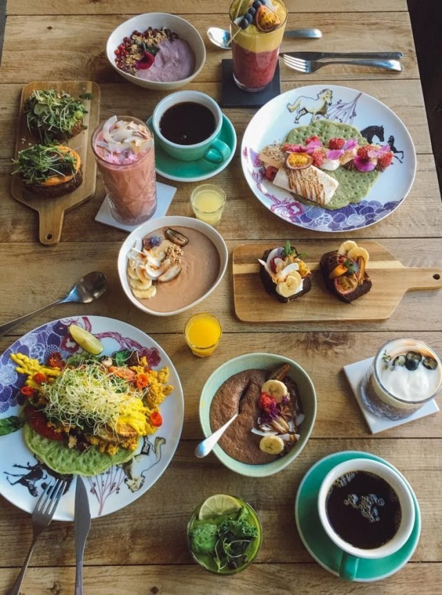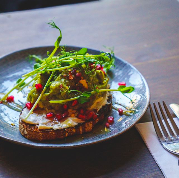 Aamiaiskomboon kuuluu pannukakkuja, avokado-toast sekä smoothie.
