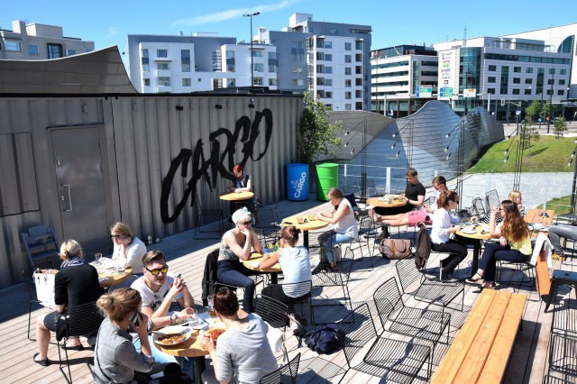 Reilun kuukauden avoinna ollut, konteista Länsilinkin sillan pieleen rakennettu Cargo tarjoilee lounaalle herkullista keittoa sekä vege- että lihavaihtoehdoilla. Lounaalla on mahdollista saada myös fitness- tai juustomunakasta. Kahvilan sisätiloissa on 50 asiakaspaikkaa ja kattoterassilla, joka nauttii koko päivän auringonpaisteesta, 70 asiakaspaikkaa. Paikka avaa aamulla jo 7.30 ja on auki kymmeneen illalla. Hyvän dj:n kanssa Cargon terassilla voisi viihtyä myöhempäänkin.