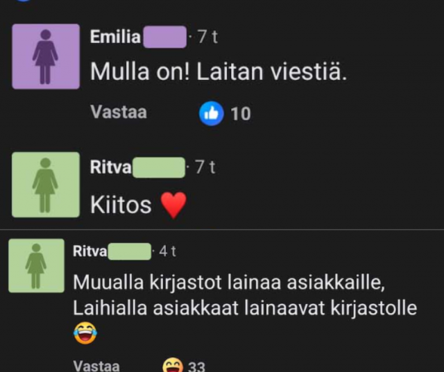 Kirjastonhoitaja Ritvan kommentti viimeisteli tilanteen: