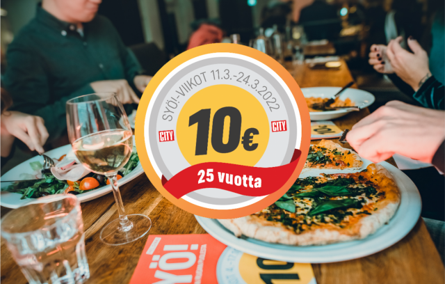 SYÖ!-viikot on Cityn legendaarinen kampanja, jossa ravintolat tarjoavat annoksia 10 eurolla Helsingissä, Espoossa, Vantaalla, Keravalla, Turussa, Tampereella ja Lahdessa. Kampanjaa on järjestetty 25 vuotta, ja se kasvaa uusilla ravintoloilla joka vuosi. Myös samat ravintolat lähtevät mukaan yhä uudestaan ja uudestaan.