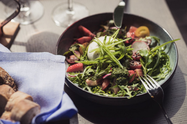 Ravintola herää täyteen kukoistukseensa kesällä, jolloin herkullisia ruokia pääsee nauttimaan myös isolla aurinkoisella terassilla.