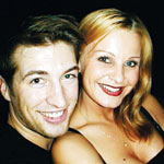 | 3. 3. Hesarin yläkerrassa ohitan suosiolla mallin ja hänen töykeästi käyttäytyvän kilpa-autoilijapoikaystävänsä, sillä viereisellä sohvalla istuu Suomen seksikkäimmäksi tituleerattu pariskunta, Tiina Häkämies ja Mikko Nummenmaa. Miten usein te harrastatte seksiä? ”Aina kun näemme, mutta haluaisin nähdä useammin”, nauraa Tiina. |