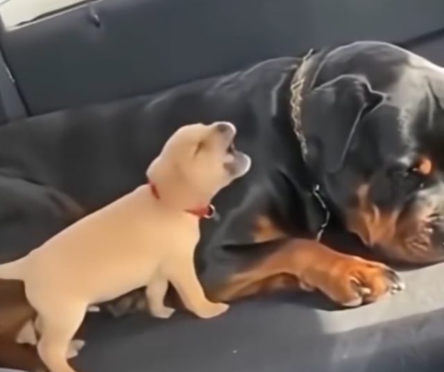 ”Anna hänen nukkua!” – koiranpentu räksytti takapenkillä, kunnes isompi koira puuttui tilanteeseen
