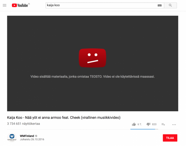 Youtube ja Teosto riidassa – suuri osa suomalaista musiikkia vedettiin pois Youtubesta