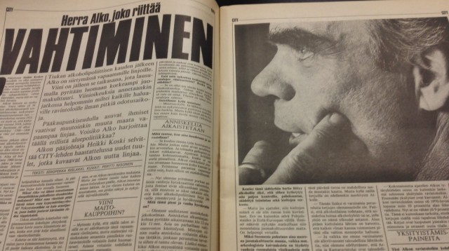 City haastatteli Alkon pääjohtaja Heikki Koskea 30 vuotta sitten. Ei näy viiniä ruokakaupoissa edelleenkään.
