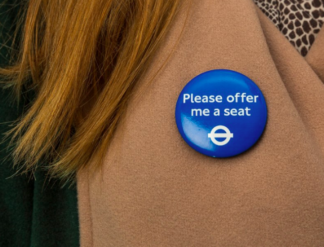 Lontoo tarjoaa julkiseen liikenteeseen pinssejä, jotka kertovat istuimen tarpeesta
