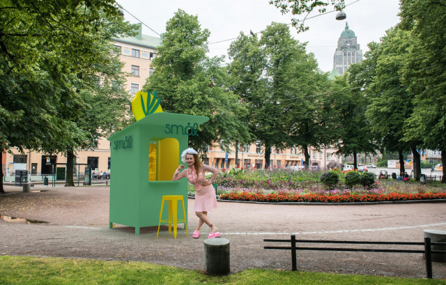 Juomabrändi Smål ja mediavaikuttaja Ina Mikkola avaavat yhden hengen baarin Helsingin Karhupuistoon 6. elokuuta.