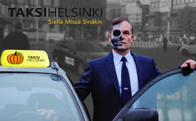 Taksi Helsingin kauhutaksit ajelevat lauantaina Halloweenin hengessä.