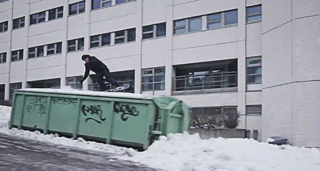 Kallion kaduilla ihastuttanut lumilautailija oli Eero Ettala promoamassa Helsinkiä.