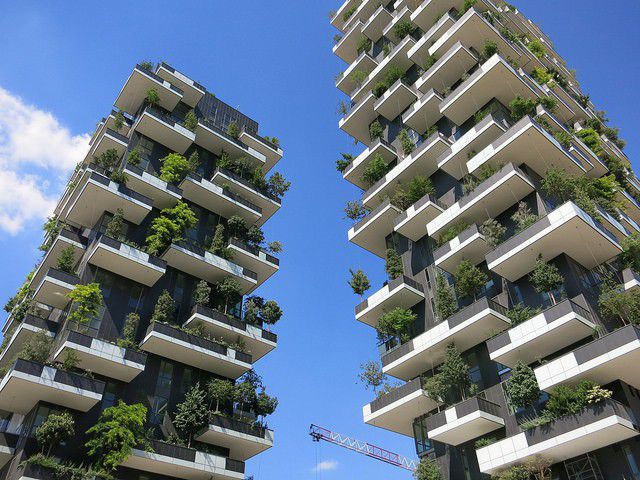 Milanolaisen Bosco Verticalen parvekkeilla ja julkisivuilla kasvaa 800 puuta ja 14 000 kasvia.