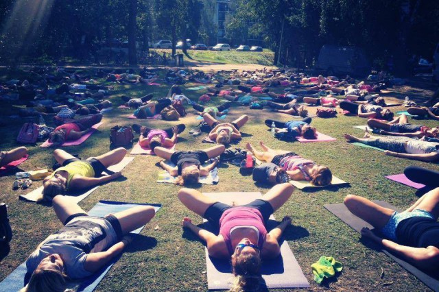 Puistoon joogaamaan tuhansien ihmisten kanssa!