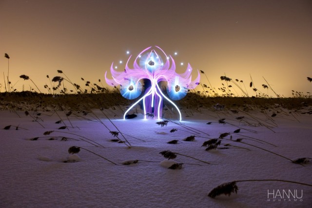 Hannu Huhtamo maalaa valolla taianomaisia taideteoksia