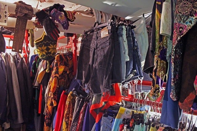 Second hand- ja vintage-kauppaan on piilotettu myös kodikas kahvila.