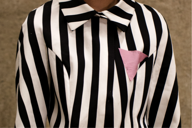 ”Ongelmat alkoivat heti. Tapahtuman pääsponsori päätti olla julkaisemasta muotinäytökseni mainoksen ja vaihtoivat myös ”moodboardini” kuvat toisiin. Kuvat eivät liittyneet mitenkään kokoelmaani. Koska kokoelmani oli saanut inspiraatiota toisen maailmansodan homoista ja lesboista, halusin tällä tavalla tuoda myös Venäjän nykytilanteen esille. Asuissani oli vaaleanpunaisia ja mustia kolmioita. Samanlaisia kolmioita käytettiin homoilla ja lesboilla keskitys- ja työleireissä. Tätä symboliikkaa he eivät kenties aluksi ymmärtäneet. Moodboardin hakaristi oltiin poistettu ja korvattu esimerkiksi vaaleanpunaisella jäätelöllä ja muilla söpöillä kuvilla. Vaaleanpunainen väri mielletään täällä ”blingblingiin”. Luomani kokoelma oli kaukana siitä! Kokoelmani mainittiin muutamassa blogissa ja nettisivustoilla, mutta kukaan ei uskaltanut kertoa ääneen, mistä oikeasti oli kyse tai mistä olin ammentanut inspiraatiota. Ystäväni kommentit netissä poistettiin ja käyttäjät, jotka kommentoivat kokoelmaani, blokattiin”.