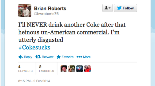 Coca-Colan mainos oli tänä vuonna kaunis video, jossa lauletaan kappale “It’s Beautiful” monella eri kielellä. Tavallisen ihmisen silmään videossa ei ole mitään ihmeellistä. Se on normaali mainos, jossa mainostetaan yhtiön tuotetta. Kaikki amerikkalaiset eivät kuitenkaan olleet samaa mieltä. Esimerkiksi Twitteriin vyöryi viestejä, jossa ihmiset haistattelivat Coca-Colalle ja päättivät lopettaa sen juomisen tämän mainoksen takia.