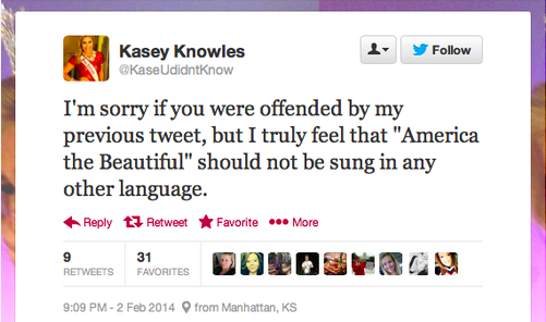 Jopa amerikkalainen Miss Kansas 2013 Kasey Knowles otti osaa keskusteluun, peräti kahdella twiitillä.
